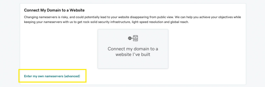 You can choose to click the Connect my domain to a website I’ve built button. You’ll be walked through the steps to change your nameservers in a user-friendly way.