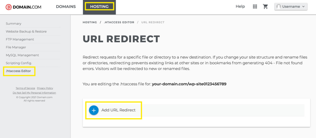 Domain.com: Setting up a 301 Redirect