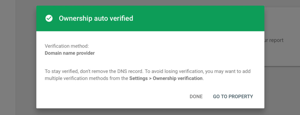 Once you see the “Ownership auto verified” message, click Done.