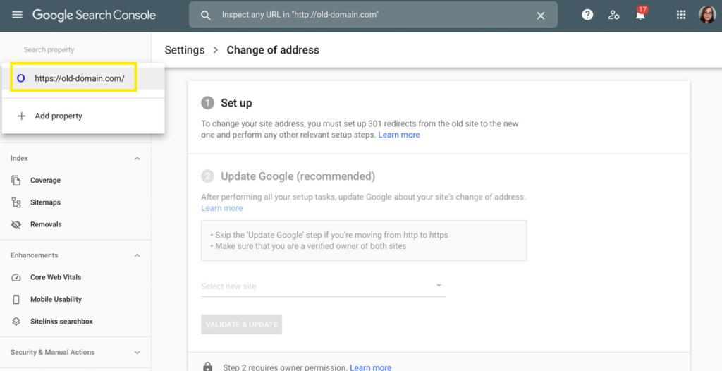 The final step you need to take is to update Google Console with your new domain name. Doing this will help Google quickly understand you updated your domain name. That way, your ranking won’t drop.