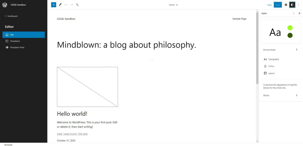 Full site editing is WYSIWYG, which stands for “what you see is what you get.” Basically, all modifications are made directly to the front end of your website in real-time.