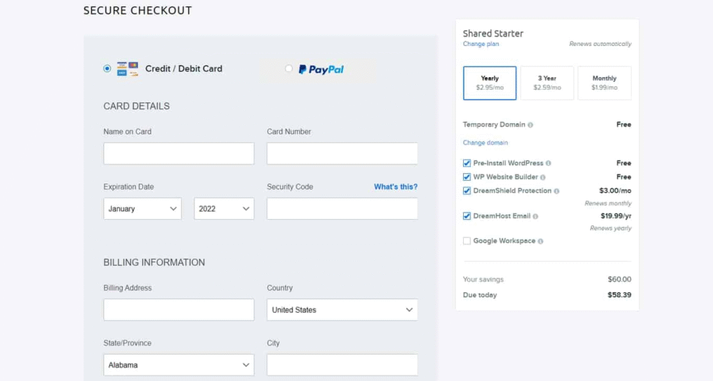 There are loads of options when it comes to choosing a web hosting provider, and whoever you choose is up to your personal preference. We recommend DreamHost because of its simplicity and customer support is great. We’ll be using them for this tutorial, so you’ll be able to follow along with the screenshots. Other host providers will have a similar process, but it will vary slightly.