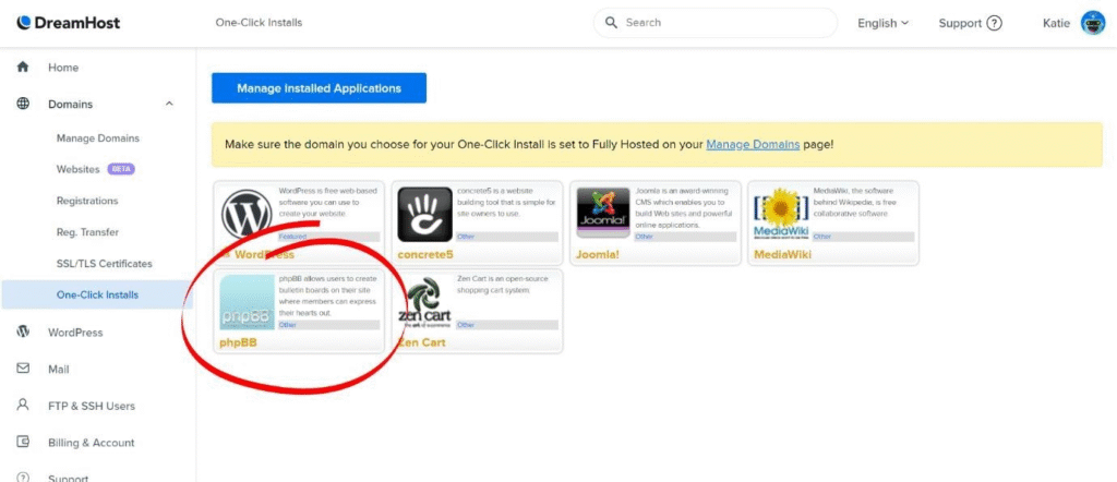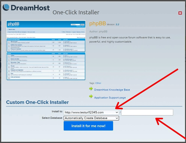 Let’s first start by installing phpBB using your host’s (in our example DreamHost) control panel.