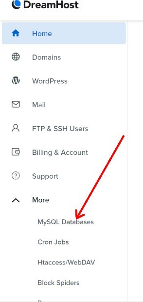 In the left-hand menu, click on ‘More’ to expand the options, and click on ‘My SQL Databases’.